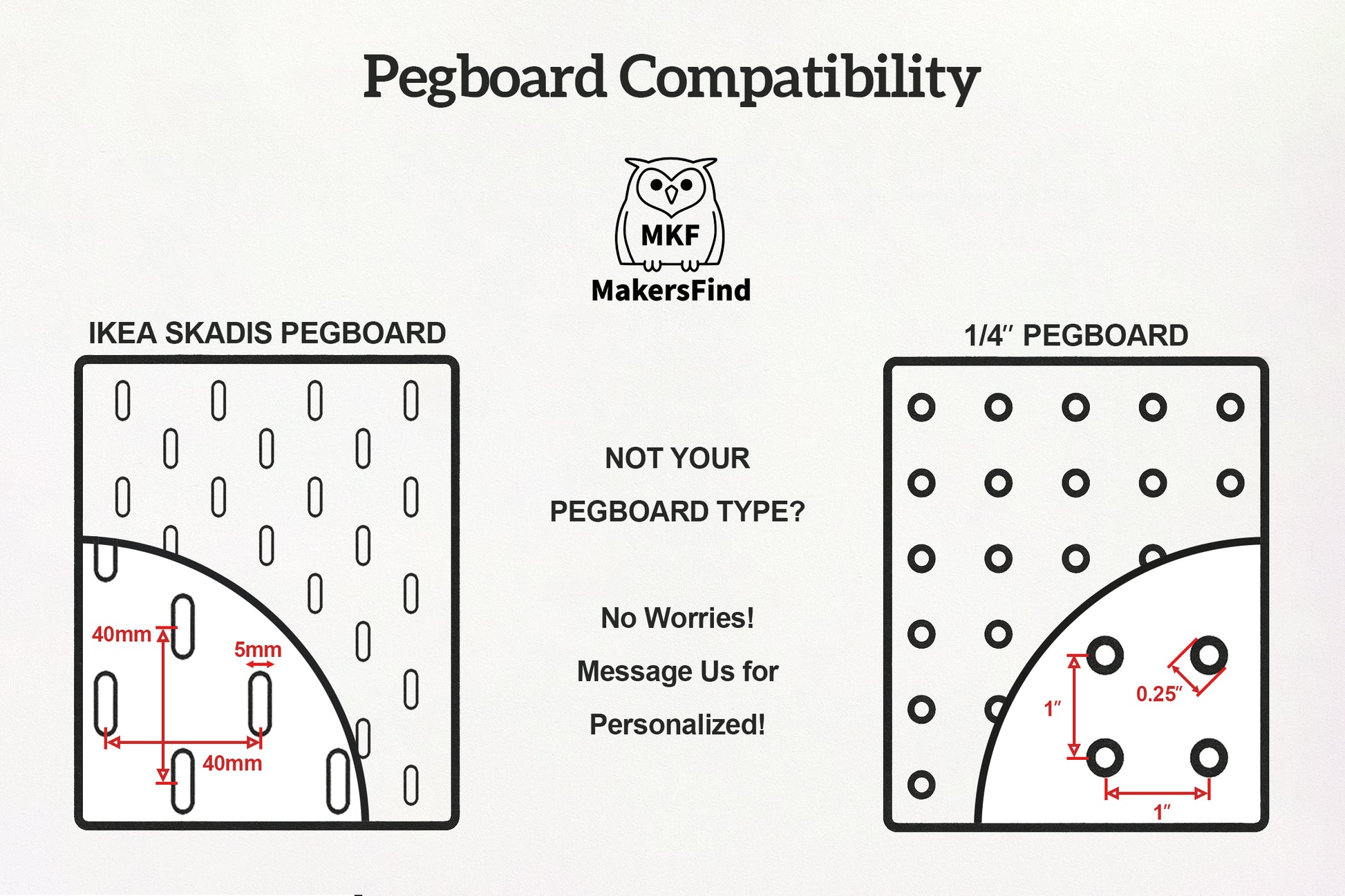 Mount: clips for IKEA Skådis or 1/4″ pegboard included