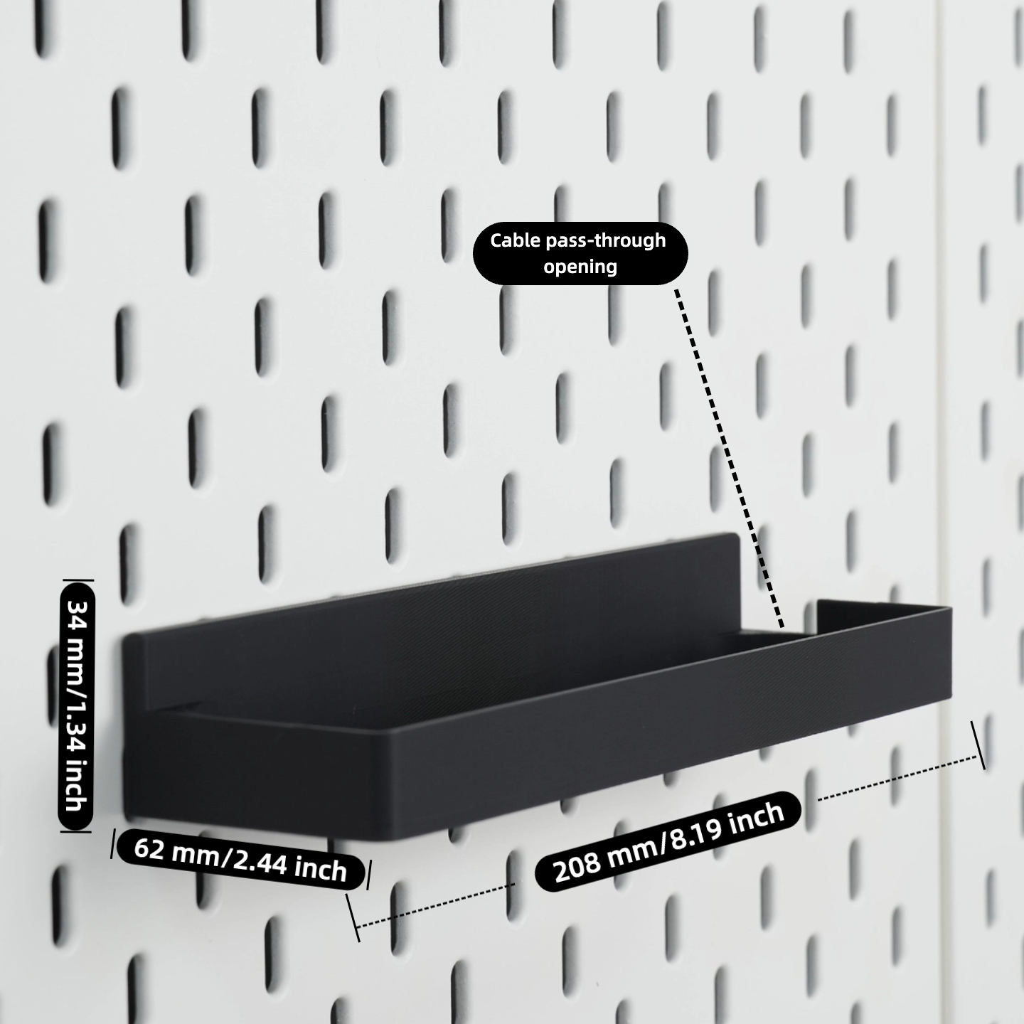 Pegboard first – pre-installed clips snap straight into IKEA Skådis or any 1/4″ pegboard; no screws, no desk footprint.